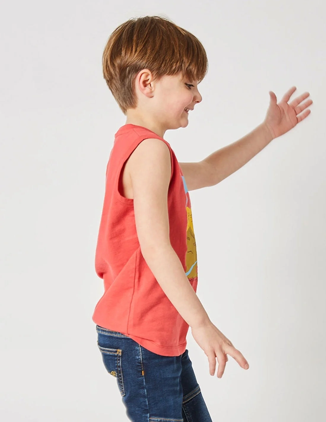 Plongez dans l'aventure avec notre Débardeur Garçon "Sahara Surf", disponible en Blanc Optique et en Rouge Terre.